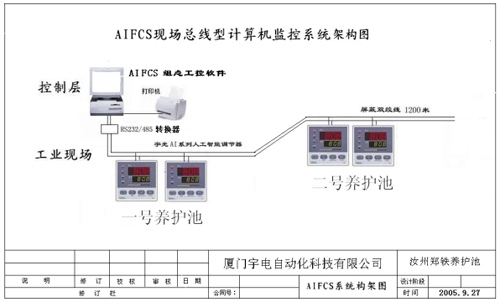 養(yǎng)護(hù)池溫度自動(dòng)控制計(jì)算機(jī)監(jiān)控系統(tǒng)采用廈門宇光獨(dú)自開發(fā)的AI人工智能調(diào)節(jié)技術(shù)集合了PID調(diào)節(jié)和模糊控制技術(shù)優(yōu)點(diǎn),實(shí)現(xiàn)了自整定/自適應(yīng)功能。及無(wú)超調(diào)無(wú)參調(diào)的精確,調(diào)節(jié)AI-808P30段程序型人工智能工業(yè)調(diào)節(jié)器(V7.0),組建AIFCS現(xiàn)場(chǎng)總線型計(jì)算機(jī)監(jiān)控系統(tǒng)。