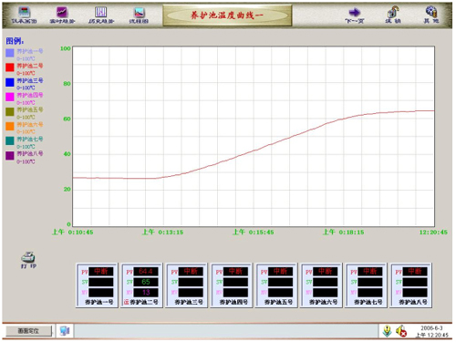 【水泥養(yǎng)護(hù)池1-12】的所有控制信息與數(shù)據(jù)信息都在控制室計(jì)算機(jī)上統(tǒng)一管理、分配。在計(jì)算機(jī)上對(duì)車間溫度進(jìn)行全方位的監(jiān)控,數(shù)據(jù)采集和各項(xiàng)事務(wù)的處理。