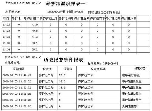 7.可隨時(shí)打印實(shí)時(shí)8個(gè)數(shù)據(jù)曲線圖表、8個(gè)歷史數(shù)據(jù)曲線顯示圖表及每5秒數(shù)據(jù)表和班報(bào)、日?qǐng)?bào)、報(bào)警報(bào)表。