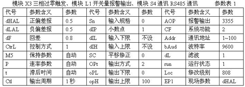 模塊X3三相移項觸發(fā)、模塊L1開關(guān)量報警輸出、模塊S4通訊RS485通訊參數(shù)