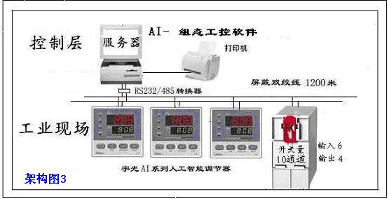 在系統(tǒng)中由于AI系列儀表的出色性能,宇電又開發(fā)出基于AI儀表并具備現(xiàn)場(chǎng)總線特性的AIFCSV9.0計(jì)算機(jī)監(jiān)控系統(tǒng)。AI儀表相當(dāng)于現(xiàn)場(chǎng)總線系統(tǒng)中的各個(gè)控制單元,利用RS485作為現(xiàn)場(chǎng)通訊總線,采用宇電自行開發(fā)的AIBUS通訊協(xié)議,可在上位機(jī)上實(shí)現(xiàn)100%儀表功能操作如實(shí)時(shí)讀取測(cè)量值、給定值、設(shè)置參數(shù)、自動(dòng)/手動(dòng)無(wú)擾動(dòng)切換、調(diào)整手動(dòng)輸出值、啟動(dòng)/運(yùn)行/停止程序,并具備開關(guān)量輸入/輸出操作能力。開放式結(jié)構(gòu)隨意添加控制儀表。