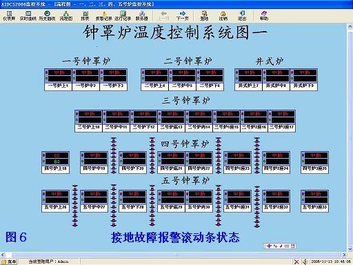 當(dāng)罩式爐產(chǎn)生接地故障,接地故障報(bào)警滾動(dòng)條狀態(tài)在流程圖上顯示接地狀態(tài)。