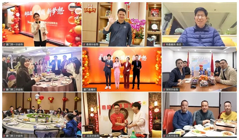 牛辭勝歲,虎躍新程。在這歲末年初的日子里我們用一場不一樣的盛宴歡送2021年也為喜迎 2022年的到來奏響新的序曲。2022年1月25日(小年夜),宇電公司“新征程,新跨越,新夢想”為主題的尾牙宴以總部大樓宇電科技大廈為主會場,通過網(wǎng)絡(luò)直播的形式隆重舉行。雖然少了以往宇電人歡聚的壯觀場面,但全新的慶賀形式、大家精心編排錄制剪輯的節(jié)目、豐富的獎品和紅包雨,也足以讓所有人感受到熱烈的新年氣息。話不多說,趕快隨小編一起來get本次年會盛宴吧~喜氣而溫馨的年會舞臺早已經(jīng)搭建好,正靜靜等待著主角們?nèi)雸觥鹊取催@專業(yè)的設(shè)備,是不是以為走錯片場來到了新聞聯(lián)播的后臺呢?燈光、音響、攝影機,多機位協(xié)調(diào),多屏幕互動,這就是我們今年的年會主場啦!為了保證直播順利進行,全國各地的員工都身臨其境參與到年會現(xiàn)場,所有的攝影機位、收音設(shè)備和直播平臺都經(jīng)過多次的測試和調(diào)整。精益求精,只為宇電人歡聚一堂保駕護航!比個耶